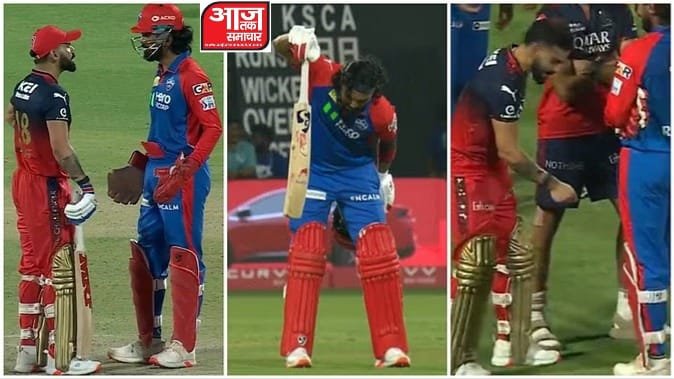 आईपीएल 2025 में रविवार को रॉयल चैलेंजर्स बेंगलुरु ने दिल्ली को उनके घरेलू मैदान पर छह विकेट से हरा दिया। आरसीबी की जीत में विराट कोहली और कुणाल पांड्या ने अहम भूमिका निभाई। कोहली ने जहां 47 गेंद में 51 रन बनाए, वहीं कुणाल ने 47 गेंद में नाबाद 73 रन की धमाकेदार पारी खेली। हालांकि, इस मैच से ज्यादा चर्चा कोहली और केएल राहुल के बीच हो रही बहस की हो रही है। आरसीबी की पारी के दौरान दोनों के बीच बहस हुई। हालांकि, मैच के बाद दोनों मस्ती मजाक करते दिखे। कोहली ने राहुल के “कांतारा” सेलिब्रेशन पर चुटकी ली और फिर दोनों गले लगकर हंस पड़े।