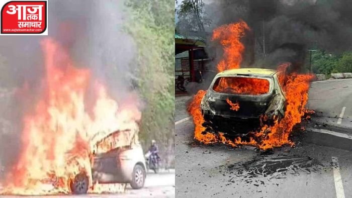 स्थानीय लोगों के अनुसार, चलती कार से धुआं निकलने के बाद उसमें आग लग गई। आनन-फानन में कार सवारों ने बाहर निकलकर जान बचाई। मौके पर कुछ ही देर में आग ने कार को पूरी तरह अपनी चपेट में ले लिया। कार बुरी तरह जल चुकी है। राहत की बात है कि कोई भी जख्मी नहीं हुआ।