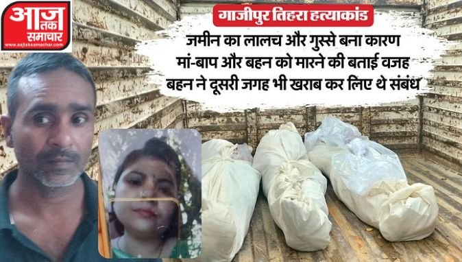 गाजीपुर शहर कोतवाली इलाके के डिलियां गांव में 27 जुलाई को हुए तिहरे हत्याकांड के आरोपी अभय यादव को बृहस्पतिवार की आधी रात को पुलिस ने गिरफ्तार कर लिया। पूछताछ में हत्यारोपी ने कहा कि साहब, जमीन के लालच और गुस्से में होने के कारण अपने मां-बाप, बहन की हत्या कर दी थी।