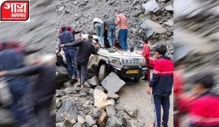 गौरीकुंड हाईवे पर मुनकटिया के पास वाहन के ऊपर गिरा भारी बोल्डर, दो लोगों की मौके पर ही मौत