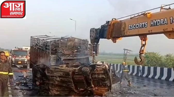दिल्ली-कानपुर हाईवे पर अकराबाद इलाके में हुए भीषण हादसे में कार सवार चार दोस्तों और कैंटर चालक की जिंदा जलकर मौत हो गई। मंगलवार तड़के करीब साढ़े पांच बजे यह हादसा उस वक्त हुआ, जब सिकंदराराऊ से आती तेज रफ्तार कार का गोपी फ्लाईओवर पर अचानक टायर फट गया। इसके बाद अनियंत्रित हुई कार डिवाइडर लांघकर विपरीत दिशा से आते कैंटर से जा भिड़ी। कार सवार पांचवां दोस्त जिंदगी और मौत से जूझ रहा है।